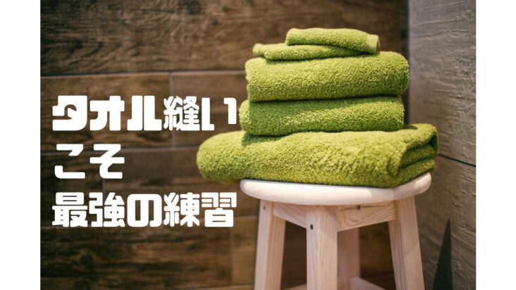 縫合における左右の手の連動やカウンターコントロールを学ぶには、縫合シミュレーターや豚皮を縫うよりも、もっと効果的に多くのポイントを学べる方法があります。所長がオススメする(実際に縫合セミナーでもココに時間をかけます)タオル縫いの練習について解説します。